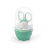 Et komplett sett for babyens neglepleie. Hygienisk stålsaks (rustfritt stål) og klippemaskin (kromstål) for trimming av negler, og en glassfil for glatting av grove kanter.