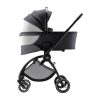 Kjærlighet i hver gate: Med svingbare hjul og lett, kompakt design kan du skyve RIO sammen med din kjære så lett at du kan bære blomsterbuketten i én hånd. Er du ute på ærend? Ha opptil 5 kg dagligvarer og babyens nødvendigheter lett tilgjengelig i varekurven. Og når den lille er klar til å nyte bylivet, er RIO superfleksibel, slik at du enkelt kan bytte mellom bærebagen, bilstolen (kjøpes separat) og sittedelen (inkludert adaptere).