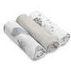 Klutene kan brukes fra de første levedagene – som svøpe, lett teppe, stellepute, laken eller praktisk håndkle. De passer for enhver situasjon som krever nærhet til babyens hud. Settet inneholder 3 kluter.