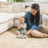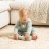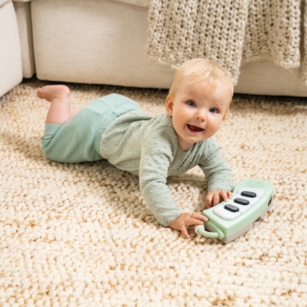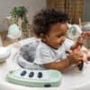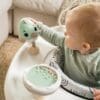 Helt fra de første dagene kan du bruke aktivitetssenterets elektroniske musikalske piano for å oppmuntre den lille til å holde seg på magen litt lenger. Plasser babyen din på magen og velg mellom en av de 3 musikalske modusene (noter, morsomme lyder og sanger) for å underholde babyen din og hjelpe dem med å holde seg i posisjonen i stadig lengre intervaller, og bygge opp viktige muskler for milepælene fremover.