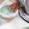 Når babyen sitter komfortabelt, plasser han/hun i det roterende setet og la barnet nyte de forskjellige lekene og aktivitetene, snurre perlene, spille vindklokke eller slå på perletrommelen. Denne mangfoldige sensoriske stasjonen gir den lille en visuell, lyd- og taktil stimulering.