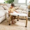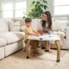 Støtt den lille på hans kreative reise ved å skape et morsomt miljø for lek, fantasi og til og med litt kunst. Enten i aktivitetsbordmodus, som lar de små leke med lekene og veksle mellom dem, eller ved å gjøre om aktivitetssenteret til et bord og en stol, og skape et morsomt kunst- og håndverkshjørne som er barnets eget.